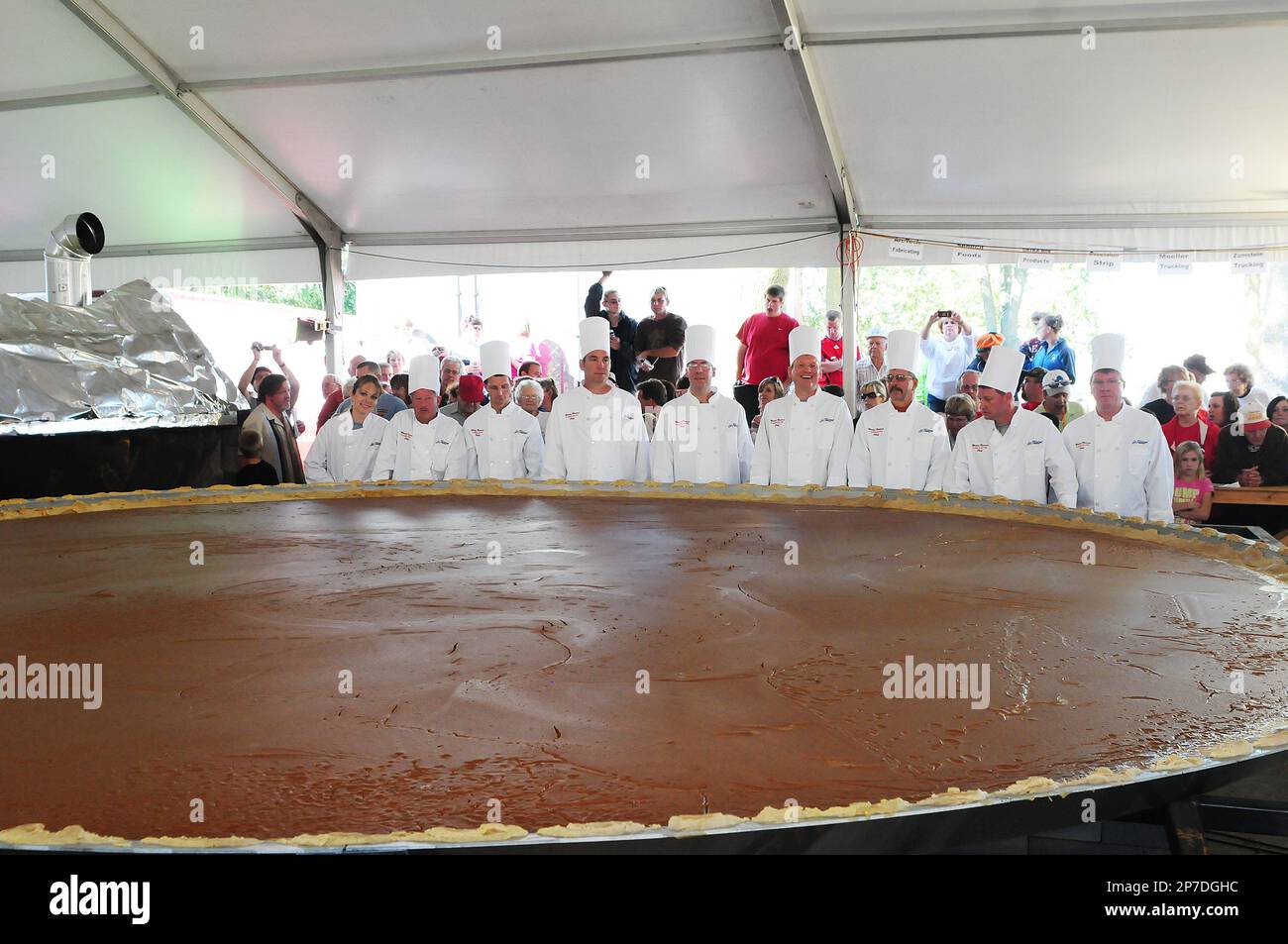 Source : www.facebook.comA row of cooks stand with their 20 foot wide, 3,699 pound pumpkin
