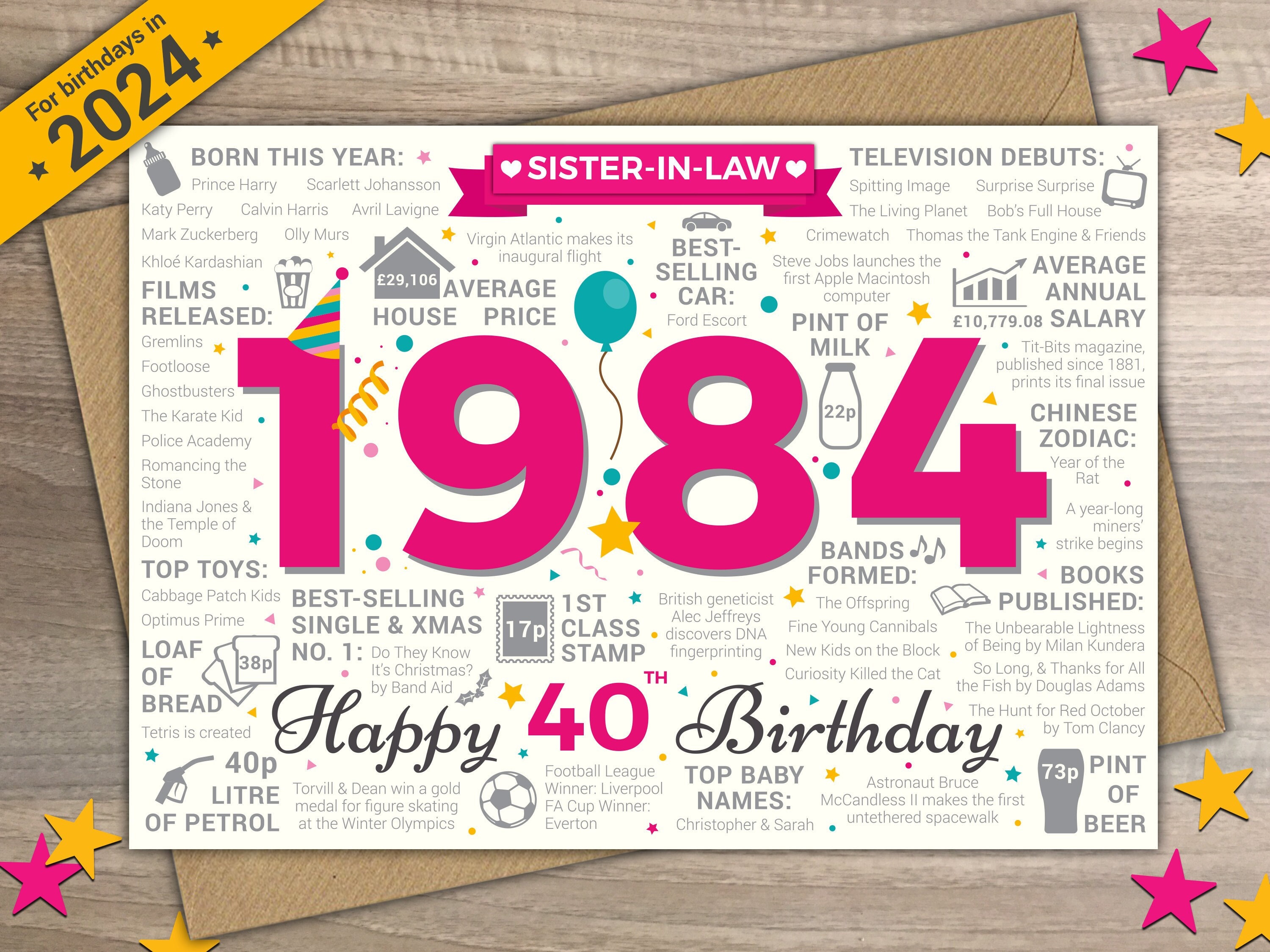 Source : www.clintblack.com40th SISTER IN LAW Happy Birthday Greetings Card Born in 1984 Year