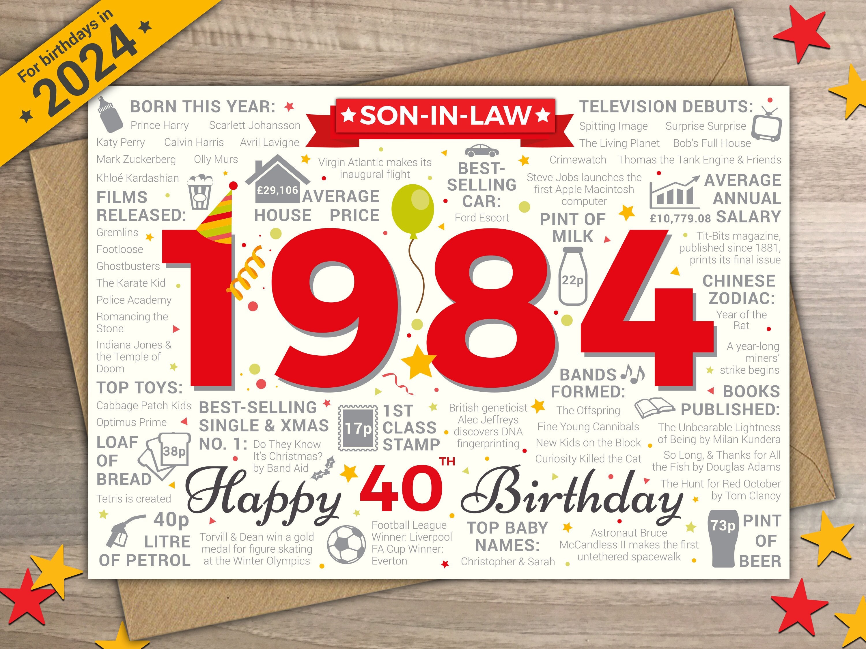 Source : www.wowktv.com40th SON IN LAW Happy Birthday Greetings Card Born in 1984 Year of